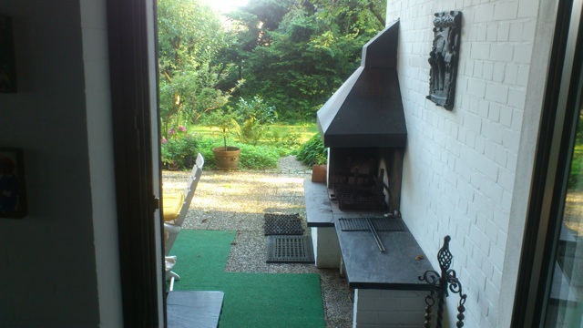 Einen offenen Kamin gibt es sowohl im Wohnzimmer wie auch an der Aussenwand der überdachten, windgeschützten Terrasse. So lässt sich hier auf der überdachgten Terrasse selbst im Spätsommer bis in den Herbst hinein noch lange draussen grillen.